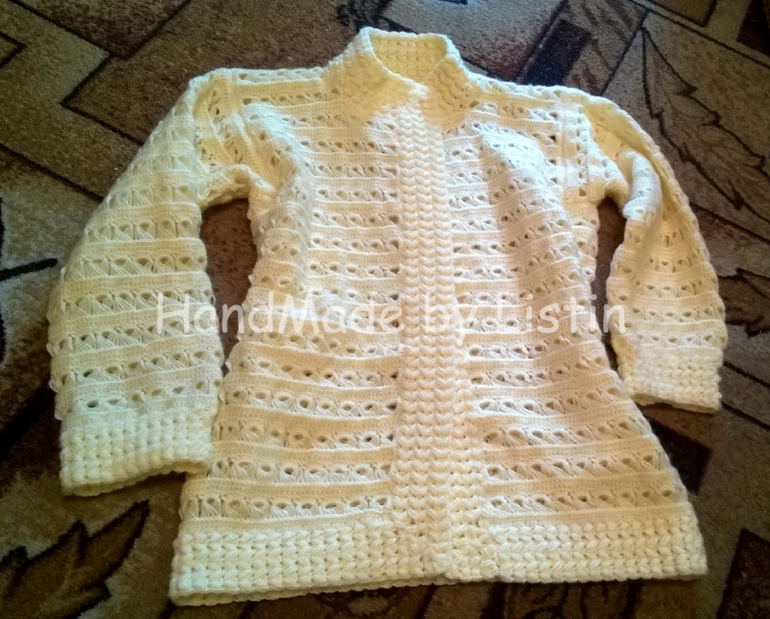 Спасибо!!! На фигуре пока нет, не для себя вязала. И померить не могу у меня 54 размер :)))), а он максимум на 46. Ссылки нет, сама делала и выкройку и сочетание узоров. Но как брумстик вязать есть МК и на ютубе и в инете. А узор для планок можно взять любой какой нравится.
