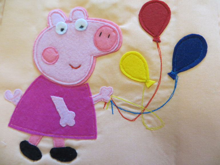 Делала в подарок двум сестрам. Конечно учитывала мульт улечения каждой. Аппликация - фетр + ленты и украшения, основа х/б и клеевая. Два кармана застегиваются на магнитную кнопку, верхний без застежки.