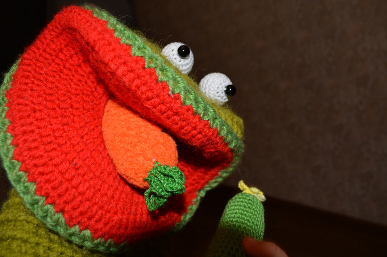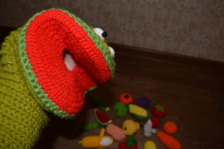 Идея не моя подсмотрела у Ббшки Ирина . Теперь это любимая игруха сына. Раньше его мало что интересовало более 5 минут, а с этой играет по долгу. Можно учить овощи, ягоды, фрукты и за одно цвета. Пихает в нее вообще все мелкие игрушки, в общем гусинка пришлась по душе моему годовасику.![]()