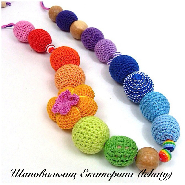 Я так и предполагала...Девочки, ведь их нужно как-то стирать периодически... да? И потом, нитки... они имеют свойство накапливать грязь быстрее... Мне кажется это не гигиенично... Но ооочень красиво! Даже, прежде чем первый раз их дать ребенку в рот, мне кажется, их необходимо постирать что ли...Но, я всегда любуюсь! Мне очень нравятся яркие цвета и разнообразие))