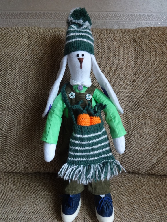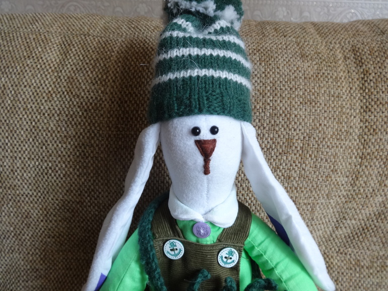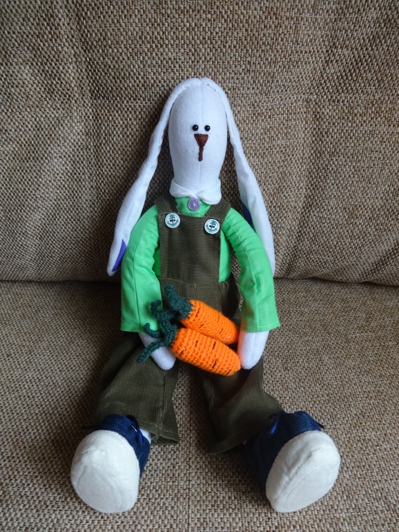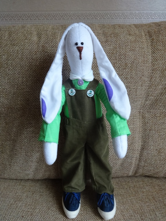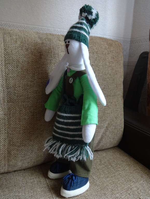 Игрушечный мир - животныеВ подарок на День Рождения сыну любимой подружки сшила такого вот зайку. Флис, высотой около 37 см, ножки на проволочном каркасе, ручки на пуговичном креплении. Муж сказал, что у него испуганный вид, но в принципе на то он и зайчик. В общем имениннику понравился. Под срезом много фото.
