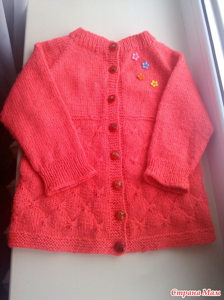В перерывах между заказами, связала кофточку доче, набираюсь опыта в вязании реглана.