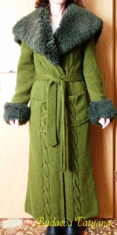 А к нам лето не приходит,по этому не теряя времени решили утепляться )))Воплотила идею заказчицы ,воротник и манжеты она предоставила.Пряжа пехорка популярная,расход 1200 гр.спицы №5. Размер 44-46,длина 130 см.