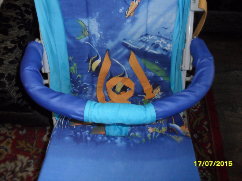 Ну, с выкройкой мы в основном и провозились больше всего) Муж снял полностью козырек с коляски и держал его на полу, пока я его обводила)) Получилось, что я сшила еще один такой же как на коляске. Мы его прицепили,а он совсем не подошел( В итоге я подгоняла уже на коляске сначала иголочками, а потом приметала, когда полностью выровняла — пришила на машинке. Ну а каркас — муж все делал, я особо не разбиралась))