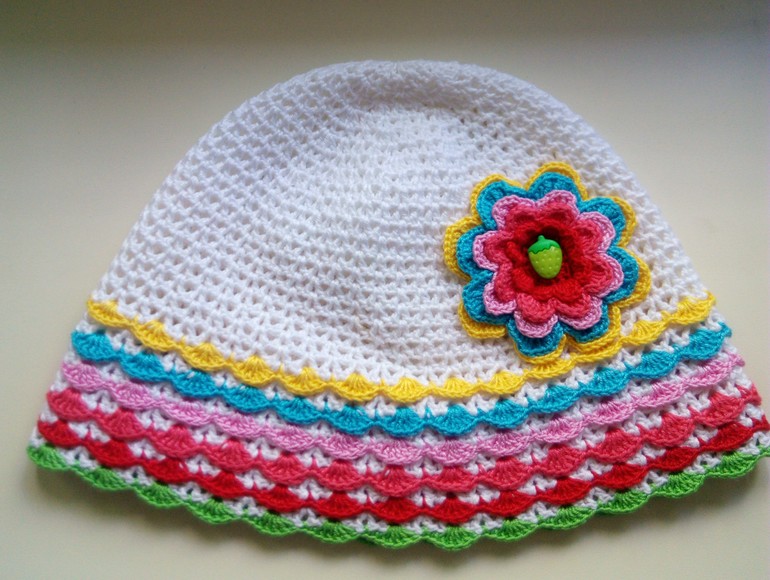 Вязала из пряжи "Коко" сама панамка, и "Пехорка ажурная" навязанные веерочки, крючок #1,3.