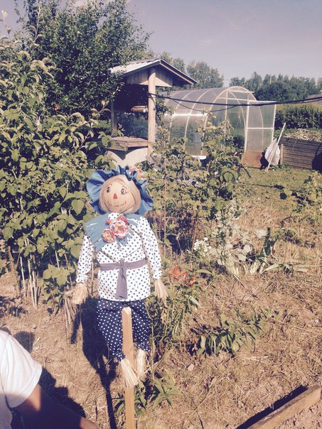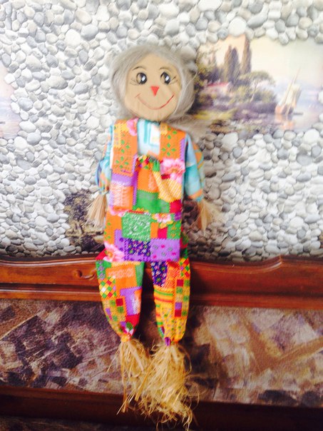 В восторге от первого чучела, такое оно радостное получилось))) А личико вышито, да? Чтобы не смыло дождем?