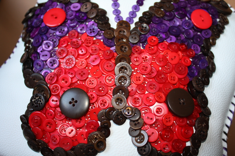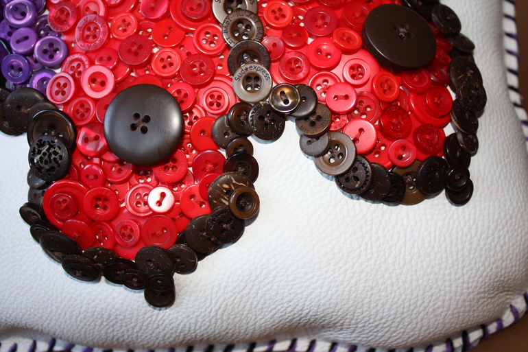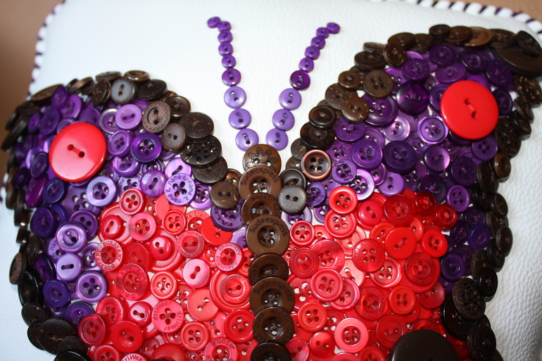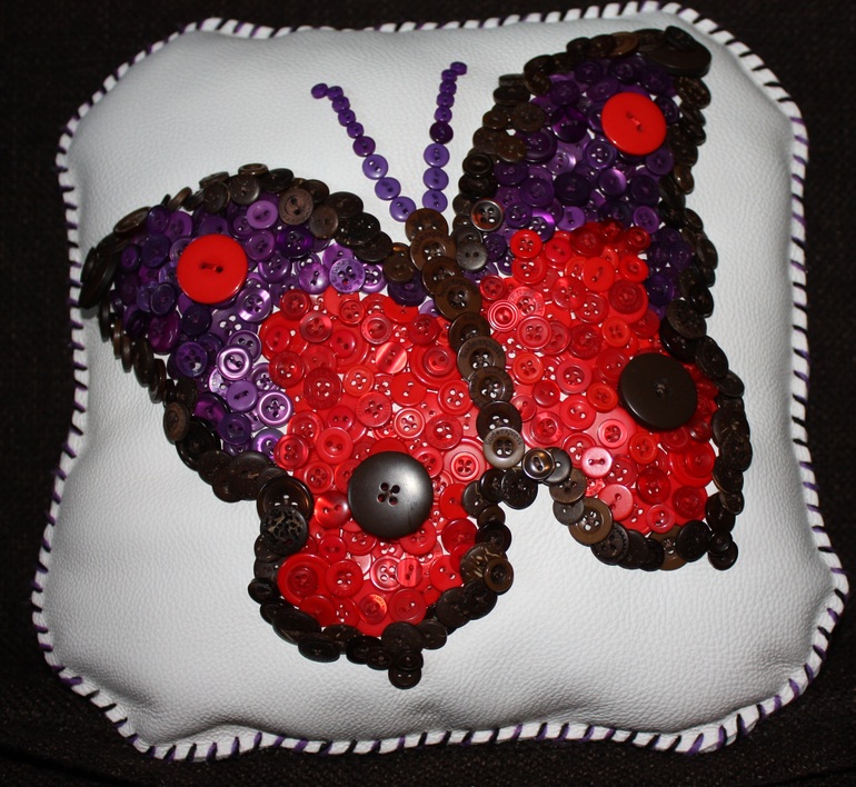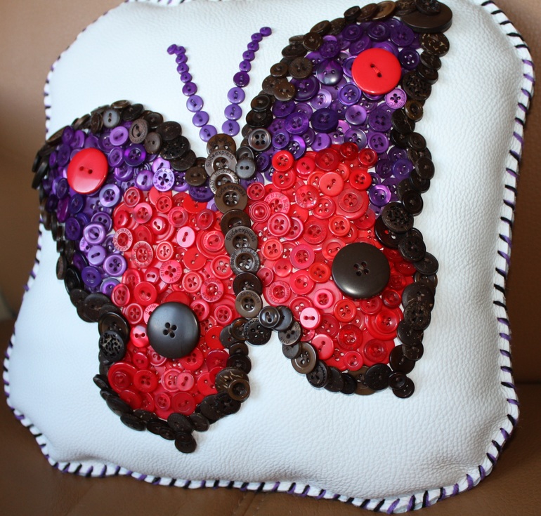 Изделия из кожиДо этого я всегда делала подушки из кожи с пуговичными деревцами и мне они очень нравились. А тут для обмена создалась подушечка с бабочкой из пуговичек. Ох, как же долго она делалась и наконец-то она закончена. Я не могу работать с наперстком, потому что не до конца чувствую пуговки и где нужно прокалывать иглой кожу для них. Поэтому я всегда пришиваю их без наперстка. Т.к. кожа толстая то игла с ниткой идет ну оченььь туго и я всегда пользуюсь кусочком кожи для проталкивания иглы (толстую кожа игла не протыкает). С этой бабочкой конечно все шло в ход )))) В конце у меня все пальцы были исколоты иголочкой и были такие мозоли.. наверное, как у гитаристов от струн )))) Прям броня на подушечках пальцев )))) Но результат того стоил. Размер: 30*30 см. Подробности под катом.
