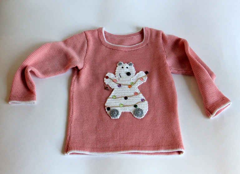 А эта красота, о которой договаривались - чудесный, добрый, ласковый мишка! Дети его гладили, все полюбили этот джемпер! Уже гуляли в нем.