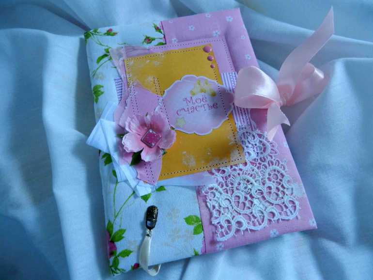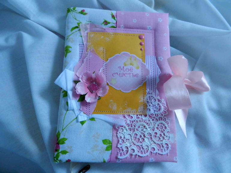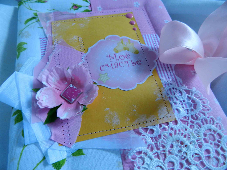 СкрапбукингДобрый вечер! Хочется показать нежненький дневничок для записей о малышке "Моё счастье". Как обычно, формат А5, более 100 красивых принтованных страничек, мягкая обложка с кружевом и цветочком, закладочка с подвеской, разделители. Смотрите!