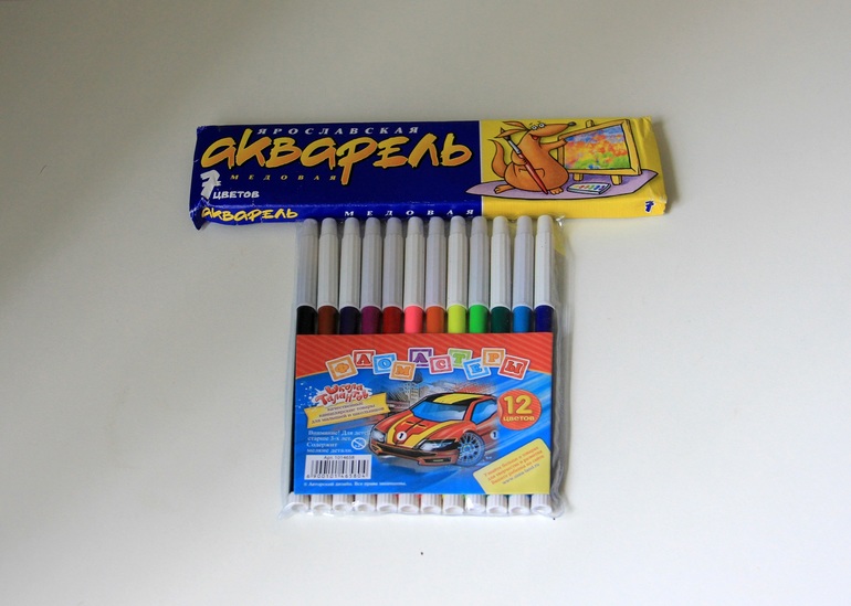 Деткам принадлежности для рисования, еще были сладкие прянички и печеньки, но их попробовали раньше, чем они попали в кадр)))