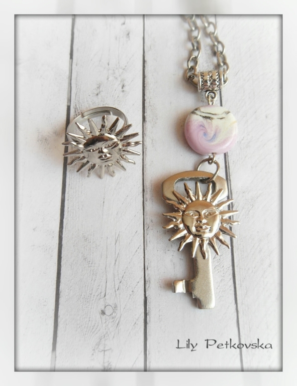 вот такое кольцо и кулон из старого ключа и бусиной Lampwork