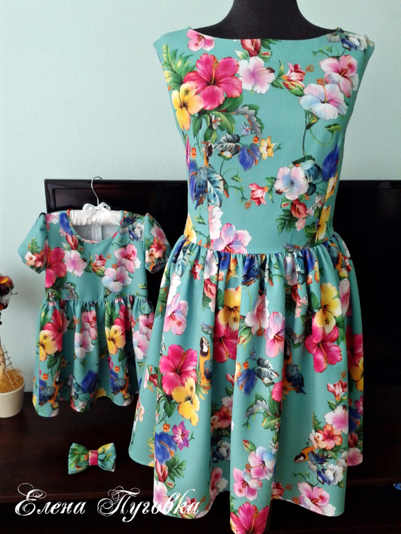 Шитье одежды, выкройки, ремонт одежды, шторы, швейные машины (уже приобретенные)Комплект платье для мамы и дочки, бабочка для сыночка и платочек для папы.