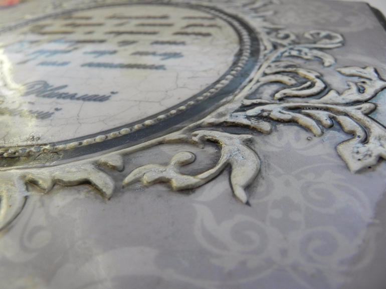 ДекупажЭкспериментирую с Олиными материалами. Испробовала кракелюр двухшаговый, лак для потали, воск битумный и серебристый.