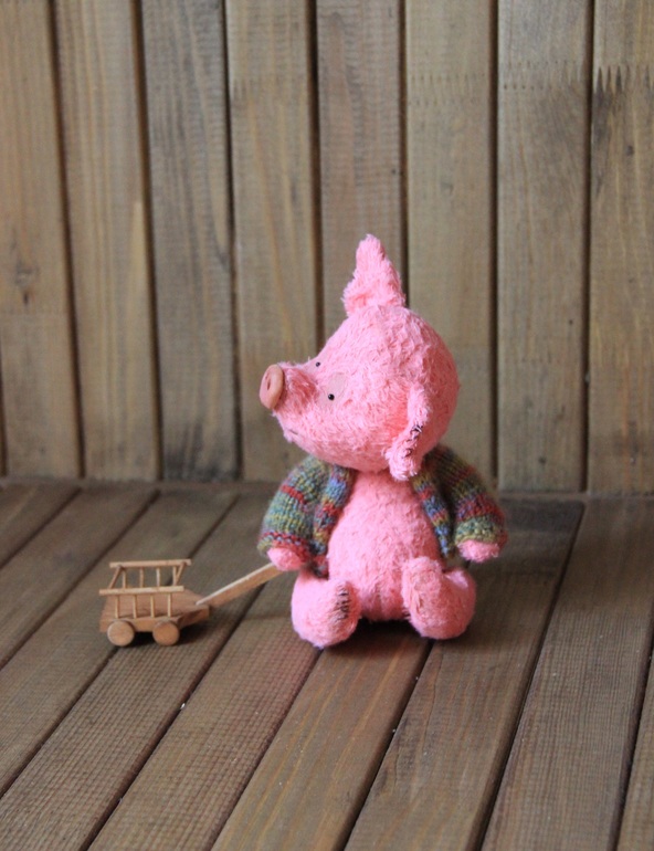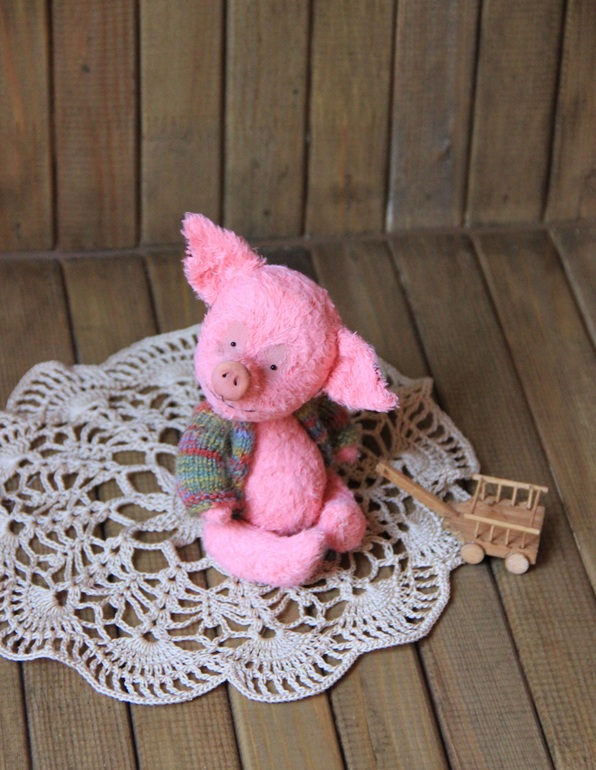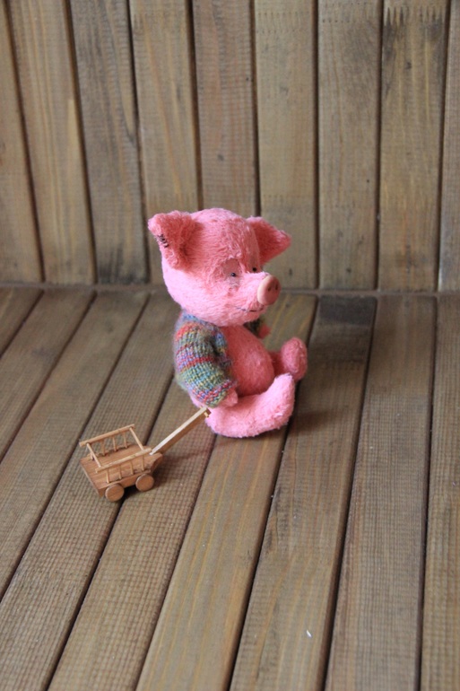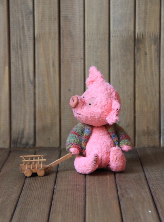 Тедди: мишки и их друзья.Бывают игрушки милые, бывают нежные... а этот поросенок получился хитрым!! Себе на уме)) Как будто задумал каверзу и теперь представляет ее в деталях)))