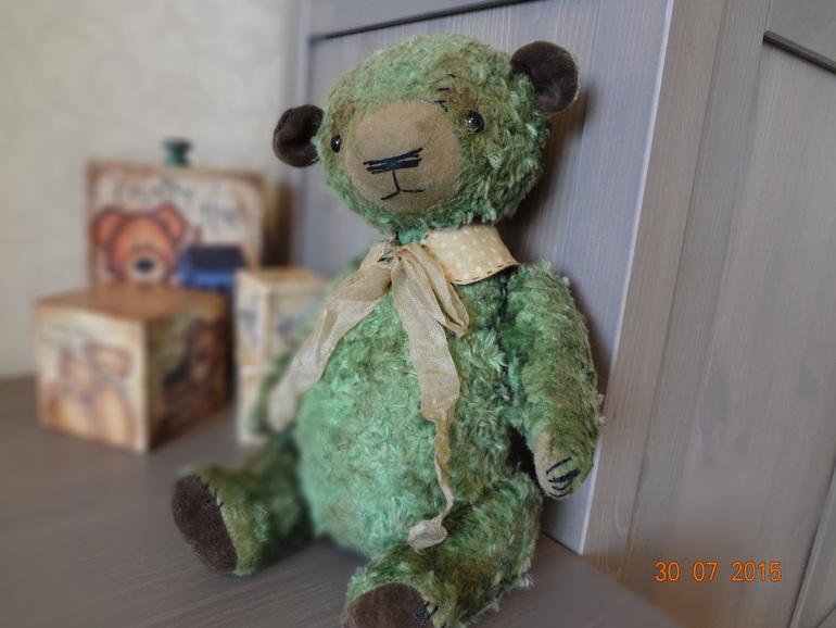 Ух ты!!! Какой большенький, тяжеленький, серьезный Мишечка))) Очень нравится!!! И зеленый такой, как елочка)))(Это меня все в новогодку заносит)))