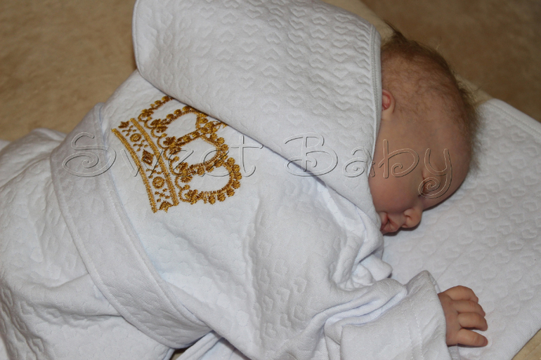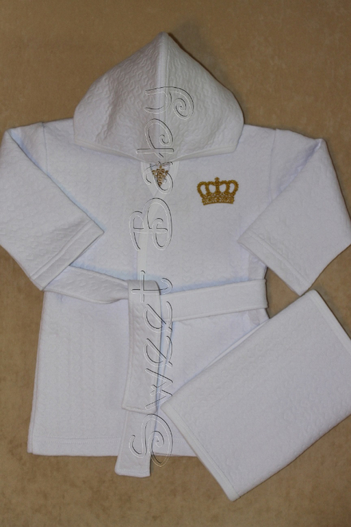 Получился "Царский" банный халатик (86 размера) и лицевая салфеточка)))