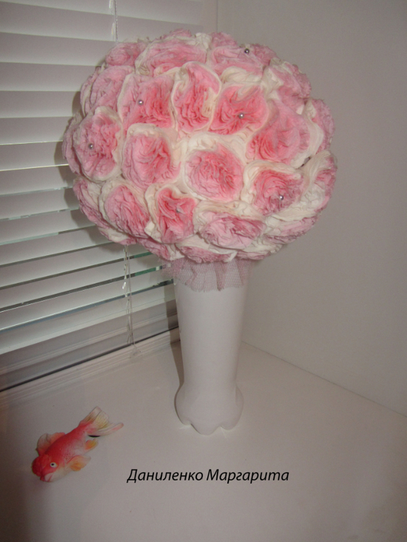 Этот топиарий из салфеток я назвала "Букет невесты". Он вынимается из вазочки и его можно держать как букет...