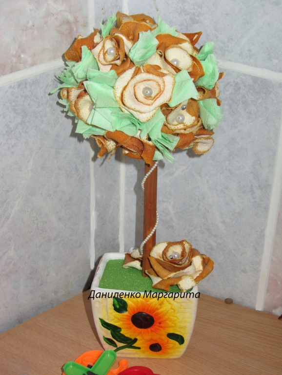 Декор, витражи.У меня на кухне стоит пахучий топиарий из засушенных апельсиновых корочек! Листочки конечно не очень, но...что получилось то получилось)