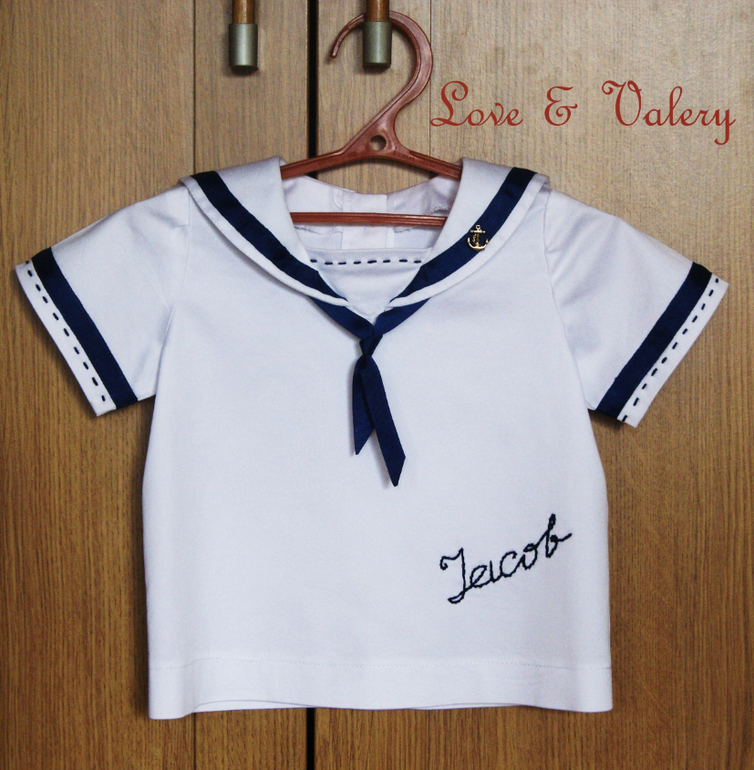 Шитье одежды, выкройки, ремонт одежды, шторы, швейные машины (уже приобретенные)Костюм в морском стиле - именная рубашечка и бескозырка, в подарок обаяшке Яшке!
