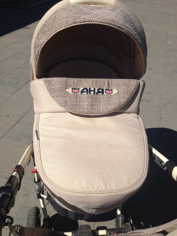 Стесняется немного, но думаю, что гордится. Сегодня везла коляску и глаз не спускала с феньки :)