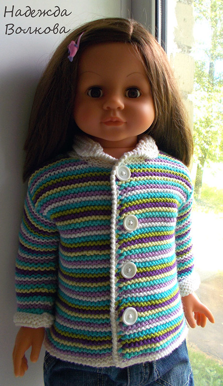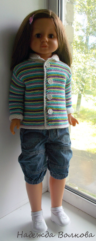 ну..... мне кажется подойдет для обоих полов)  Чисто девчачего в этом жакетике ничего нет. Я б на пацана своего легко такой одела)п.с. Надь, у нас куклы одинаковые что ль?) Какого роста твоя?)))