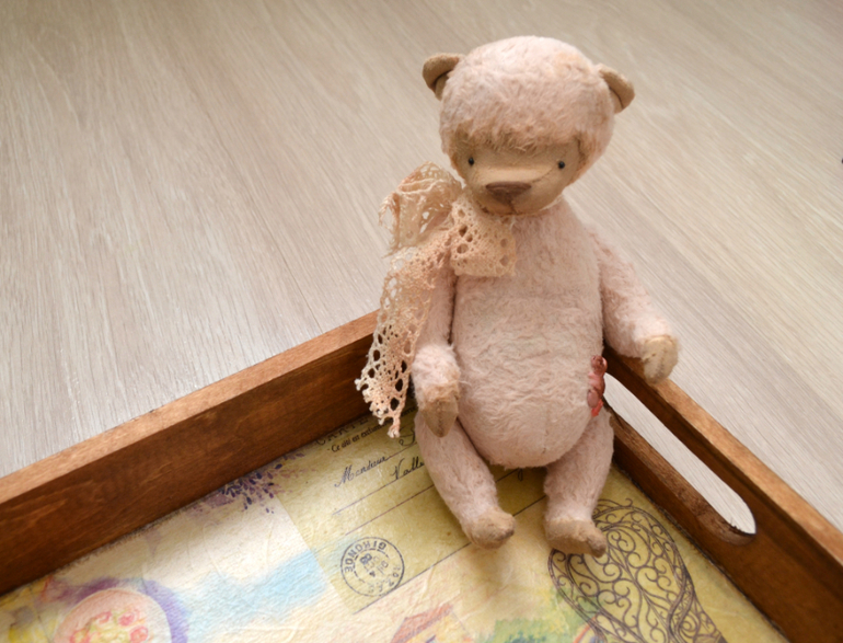 ...мы с этим медведем пардон, истинным французом, носились как с писаной торбой - и потрогать хочется, повертеть, рассмотреть и какой то нежный трепет, как будто прикоснулись к чему то таинственному, неизведанному, к истории игрушки...в общем, поразились таланту Инессы все! Поселился наш француз на полке, встал как родной )))) значит точно он дома!)))