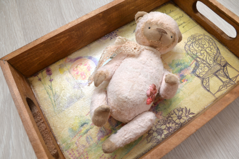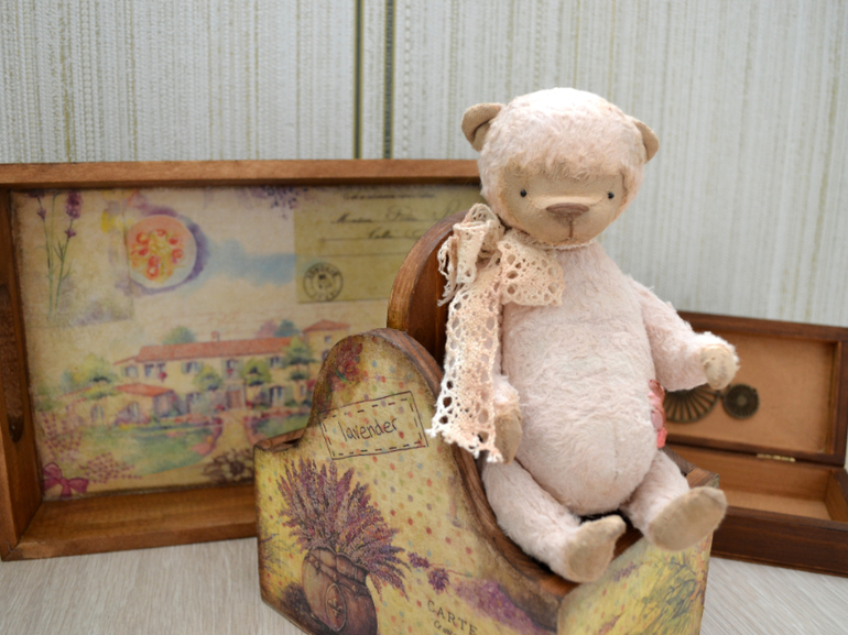 . После этого декупаж потерял свою актуальность (но только на время!). Нет, девочки, я знаю, что она шьёт игрушки и некоторым я даже вязала одежду, но тут...винтаж, плюш, шплинты, опилки...слова то какие иностранные для меня