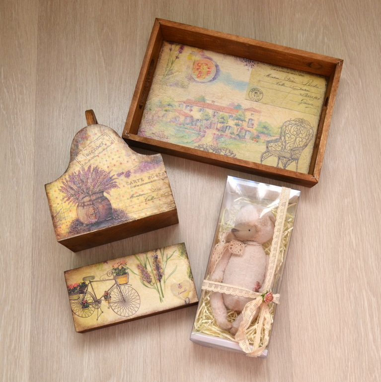 , поэтому я наслаждаюсь работой Инессы!!! Чистая, аккуратная, качественная работа! Спокойные, нежные и умиротворительные картины! Всё гармонично сложилось в цельную и практичную вещь, будь то поднос, или шкатулка, или короб для специй! Сначала, взяв в руки, думаю - ну как можно этим пользоваться, это только для любования! )))) А потом понимаю - жить нужно в этой красоте и жить здесь и сейчас! Так что пылиться на полке этим красавцам не получится ))) Короб для специй подарим свекрови (мне плюсик за внимание, а Инессе огромное спасибо!)