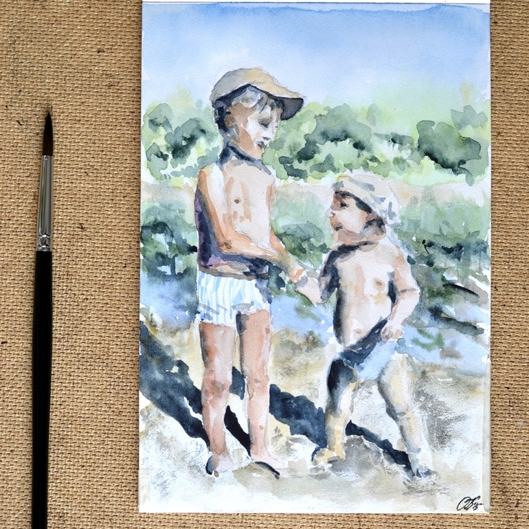 И солнце сквозь сосны необычно очень. Мальчишки хороши, необычно; хоть и не очень четкие лица, зато тени очень натуральные, интересная работа.