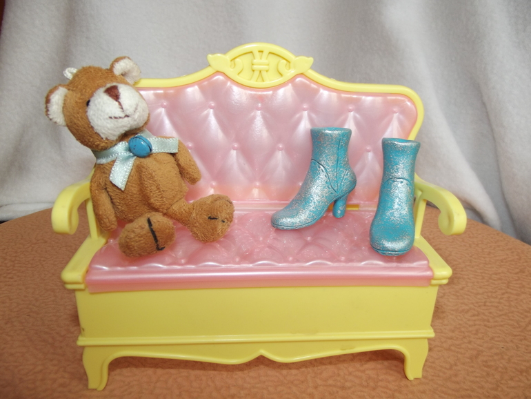 Она обожает своего плюшевого друга и старается с ним не расставаться. А ещё модница и выбражуля, пока мама не видит, она красит ногти и ...одевает мамины "каблуки".