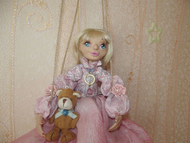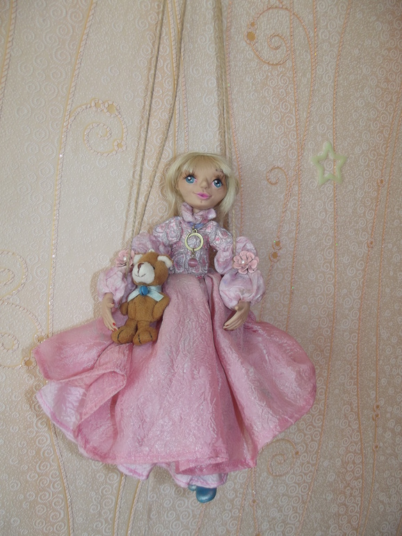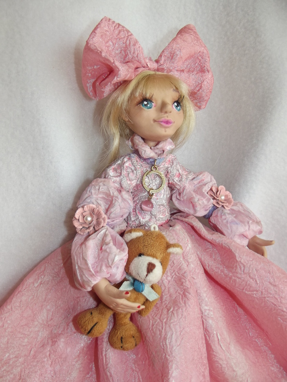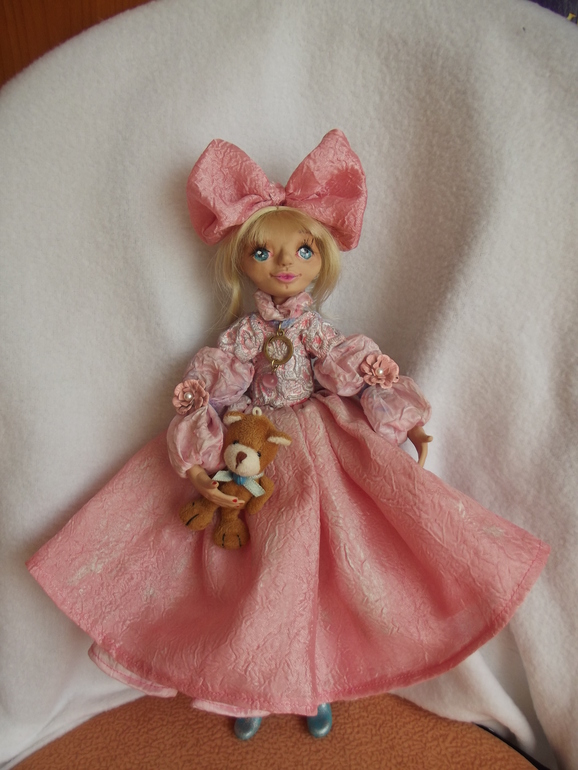 Куколка Голубоглазка из запекайки Фимо, каркасная, ручки, ножки сгибаются, сапожки (тоже Фимо) пока съемные. Бант временный, т.к. образ у меня не сформировался полностью.