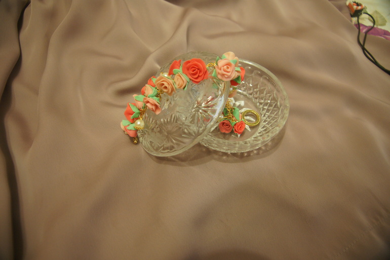 Новый браслетик из полимерной глины с жемчужными бусинами.Четыре оттенка роз,очень нежно выглядит.,к нему есть колечко, фото позже)