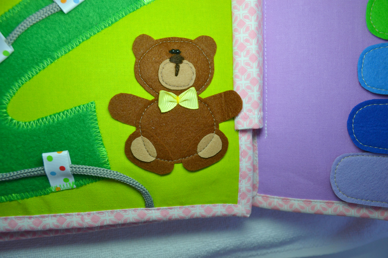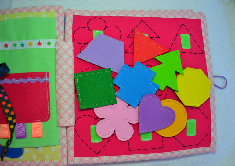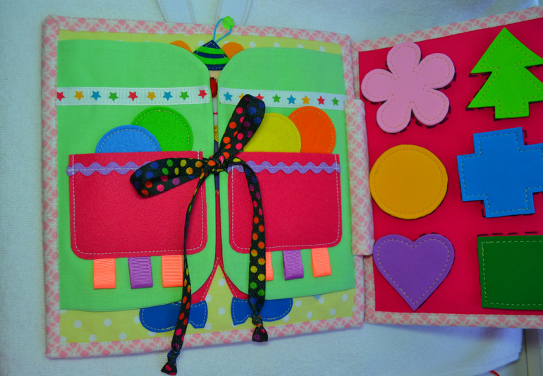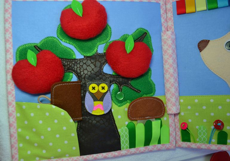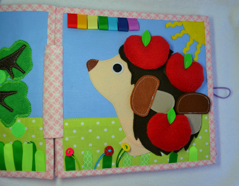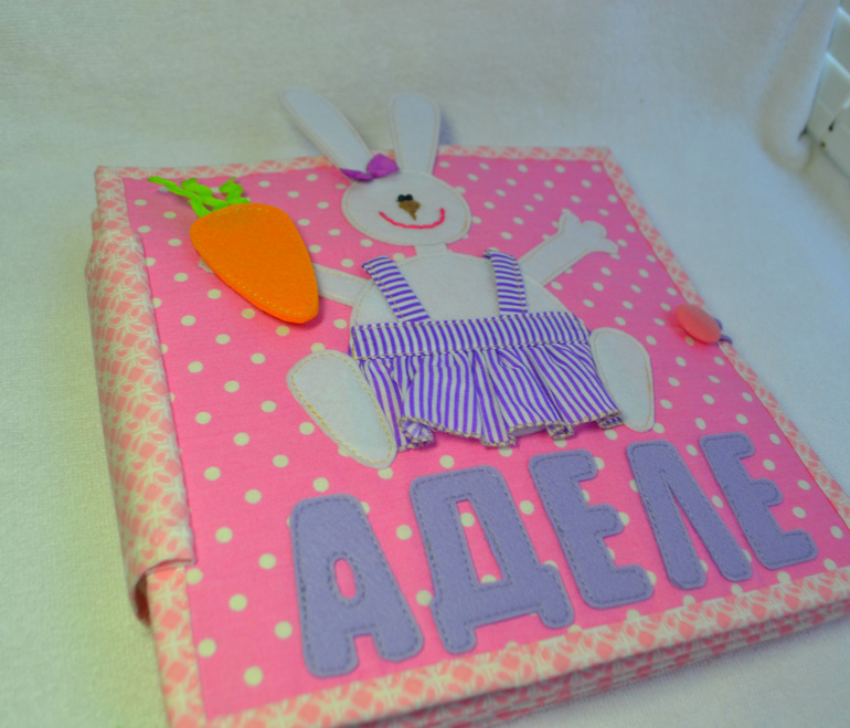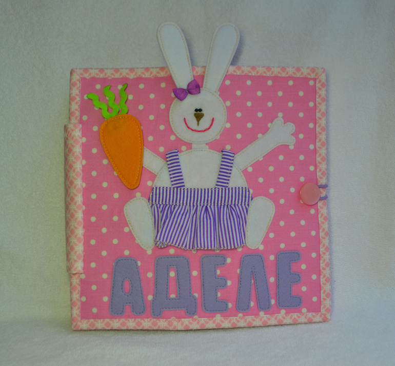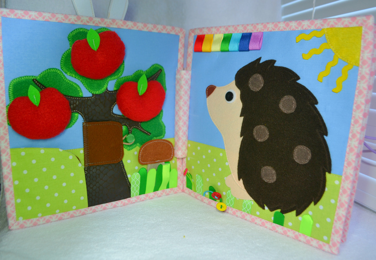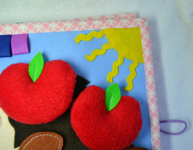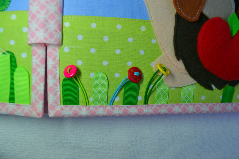 Развивающие игрушкиЕще одна книжечка для малышки Аделе. Размер книжечки-23*23см. Съемных деталек-37шт. Обложку попросили сделать нежненькой, получилась такая). Много фото под cut! Приятного просмотра!)