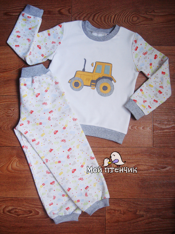 Шитье одежды, выкройки, ремонт одежды, шторы, швейные машины (уже приобретенные)Пижамка в сад для любителя спецтехники:)