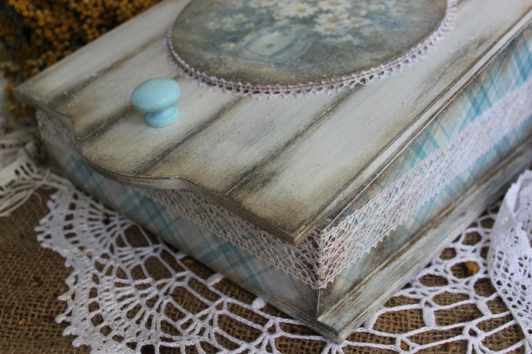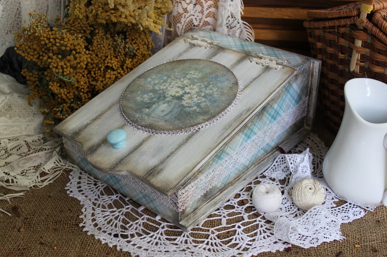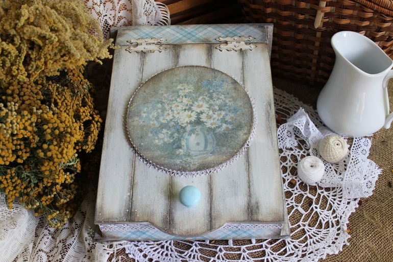 заготовка лежала ну полгода точно,что только я не примеряла,все не то...И что то так захотелось чего то уютненько-деревенского,не залаченное до одури,захотелось немного шершавости,чуть состаренное,имитация досок,вобщем я довольна!