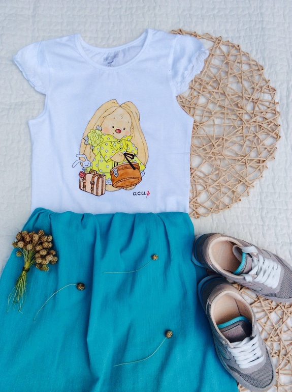 Футболочка 100% хлопок (Индия), акриловые краски по ткани, размер 128 (5-6 лет)