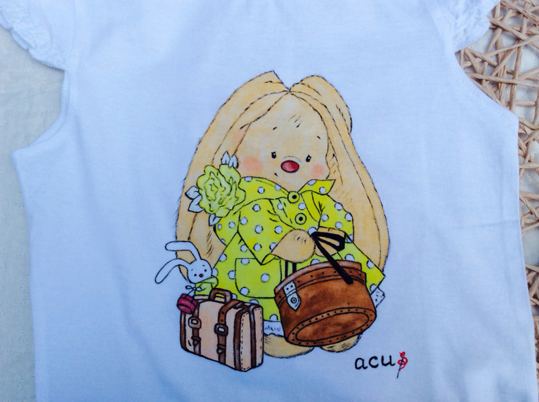 Роспись по ткани, батикПродолжаю серию футболочек с зайками МИ. Очень они мне нравятся, просто ми ми ми :))))