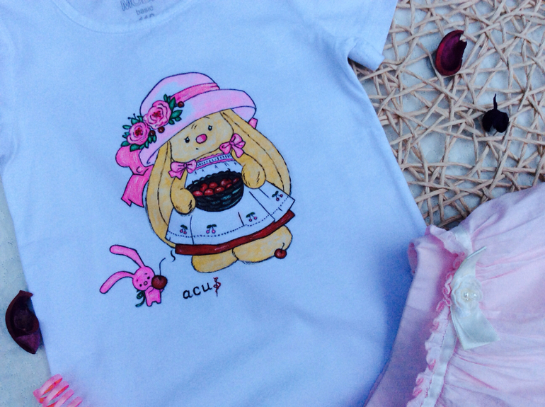 Роспись по ткани, батикНаверное последняя футболочка этого лета с зайкой МИ (будет другая серия футболочек). Но какая сладкая:)))