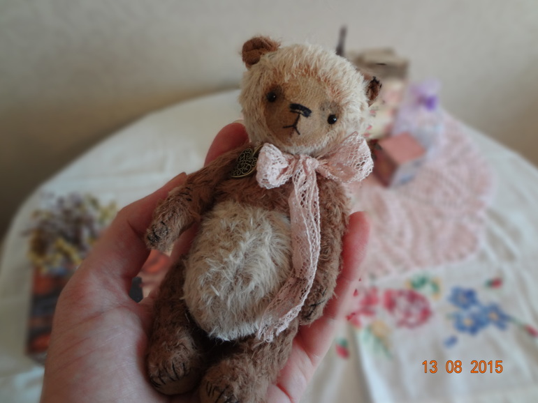 Игрушечный мир - животныеПандочка такая милая малышка,совсем крошка,ростиком 13см,карманная мишутка,можно носить с собой))Сшита из вискозы,набита опилочками и утяжелена. Шплинтовое крепление.Глазки стеклянные на петле.Пандочка сидит уверенно сама,стоит с поддержкой. сшита полностью вручную с большой любовью и теплом.