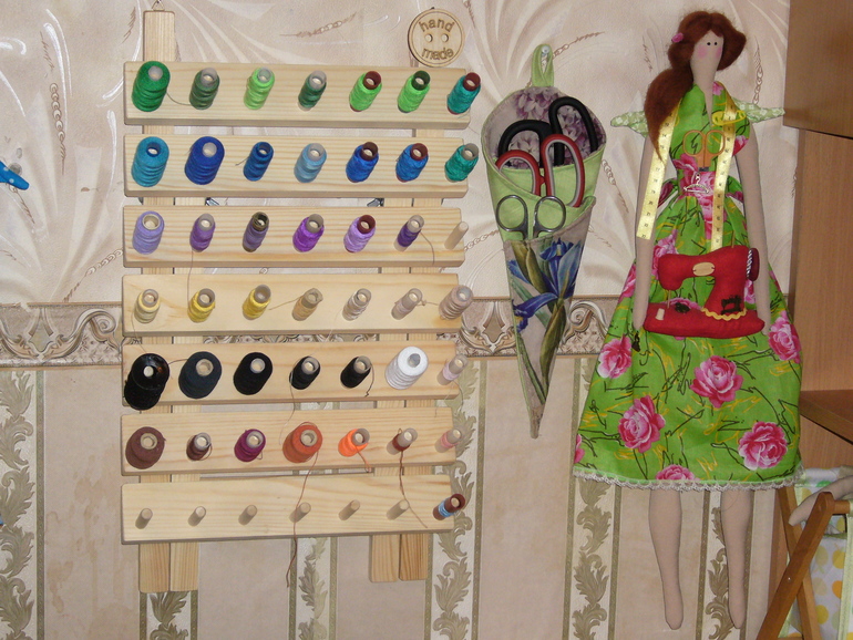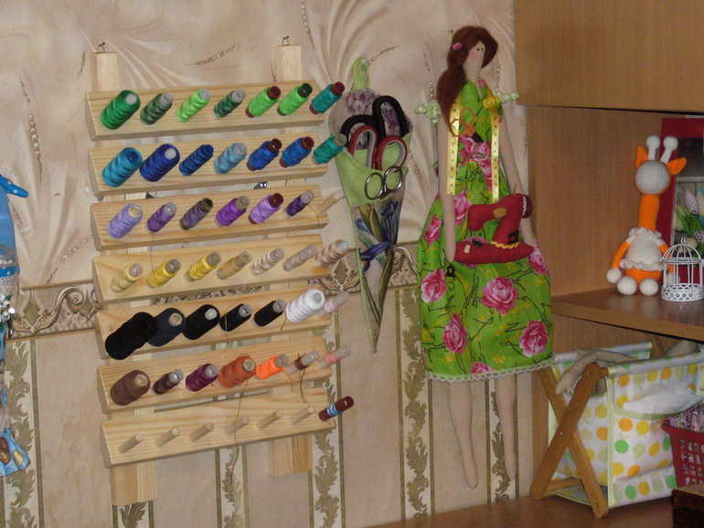 Мой рабочий уголок, запасы, инструментыЯ продолжаю обустраивать свой уголок. Совсем недавно исполнила давнюю свою хотелку, прикупила вот такую штучку для ниток. Очень удобно и все под рукой! Ниточек правда у меня оказалось не так много,но это дело наживное)).