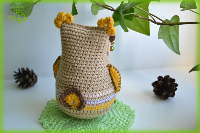 Первый раз вязала игрушку без описания, лишь глядя на картину в инете)) вдохновлялась работами Вендулы Мадерски - её работы всегда интересны и необычны, она не боится сочетать почти не сочетаемые цвета и всегда выходит ярко и красиво))) Вот и я решила поэкспериментировать, в результате Агата получилась не похожая ни на кого - такая себе индивидуальность :))