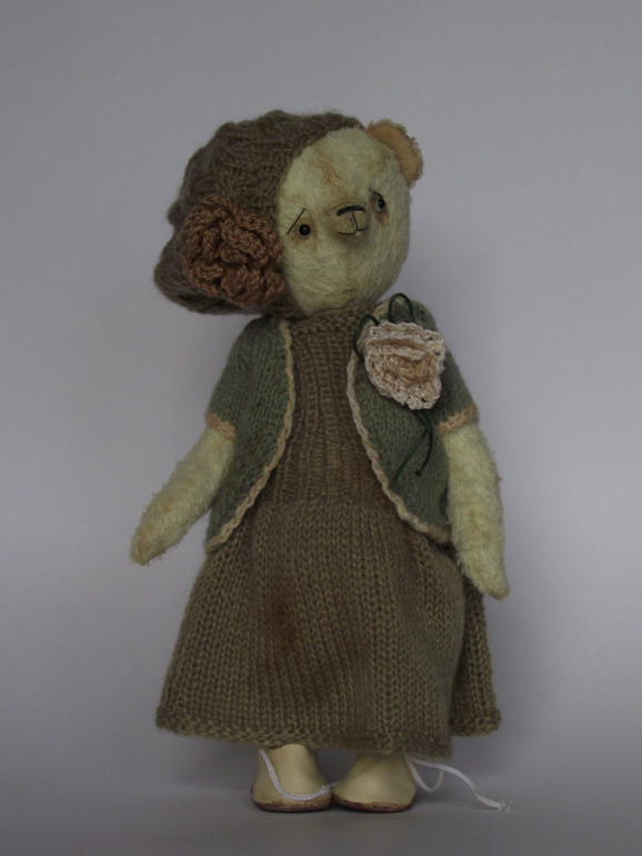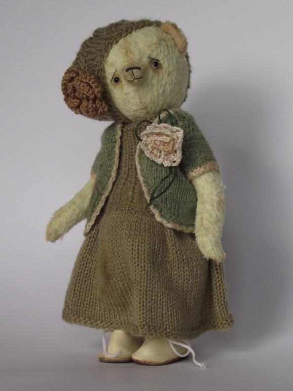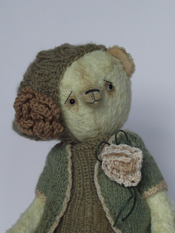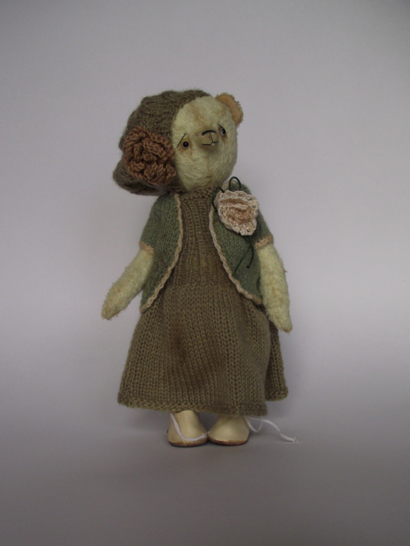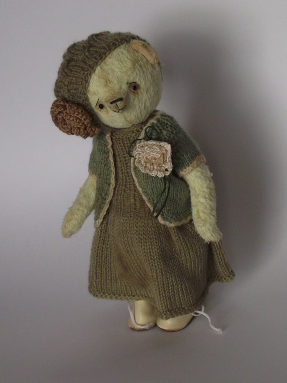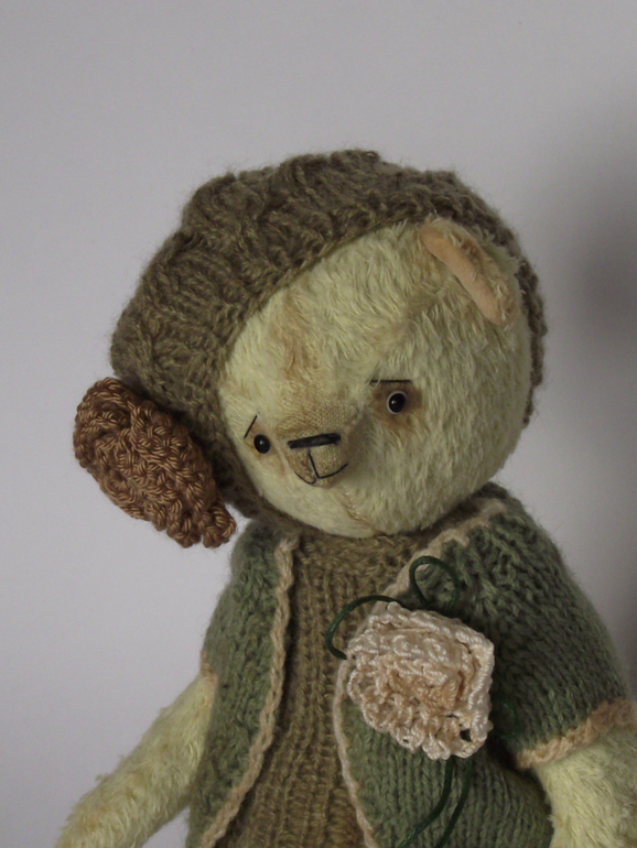 мишка Мелисса из нежно-салатовой вискозы в вязаной одёжке и ботиках, всё снимается)