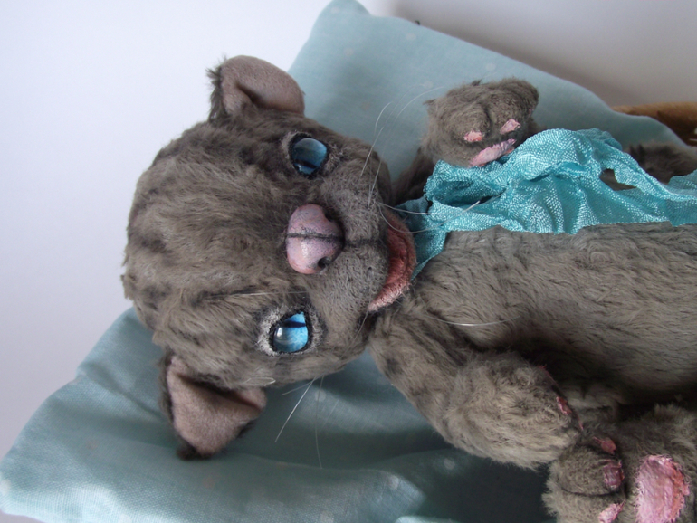 а ещё у меня получился вот такой озорной котейка, этим летом на историческом фестивале в Суздале нашёл заботливую мамочку) Всем людям так нравилось его пузико, что каждый подходя наровил почесать его))) мы уж прикалываться с девчонками начали, что надо рядом кружку ставить и брать денюжку за это)))