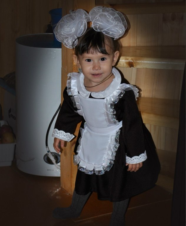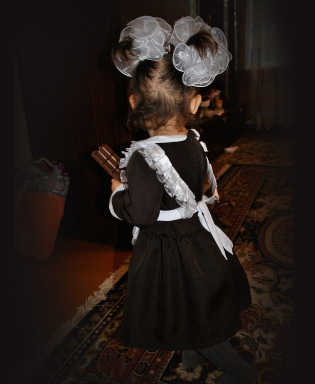 Шитье одежды, выкройки, ремонт одежды, шторы, швейные машины (уже приобретенные)У меня мама педагог с более чем 20-ти летним стажем. Да еще и родилась 1 сентября. Ну как пройти мимо такой темы как школьная форма. Поздравлять свою любимую бабулю моя дочь отправилась именно в ней, в форме советского образца. Сшила буквально за день, поэтому немного косячно)))