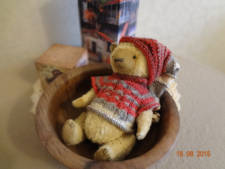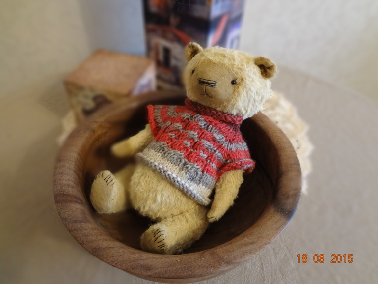 Кать,ага на вашего похож,тоже думала сшить ему жилеточку,но потом решила нарядить так))) А хозяйку еще нет.... Вы кстати не забрали еще мишку с почты?
