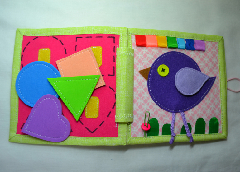 Развивающие игрушкиСшила еще одну мини-книжечку. Размер 14*14 см. Под cut еще фото. Приятного просмотра!