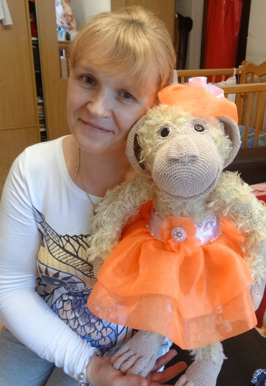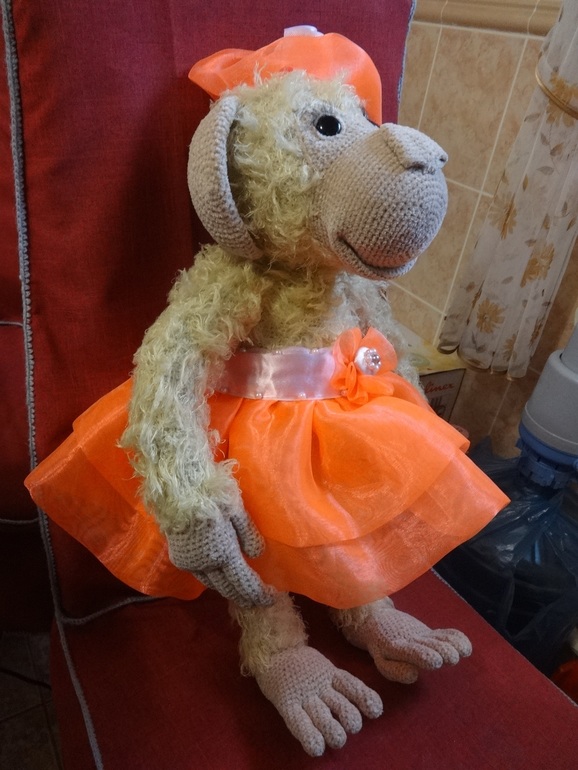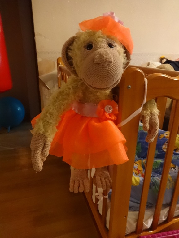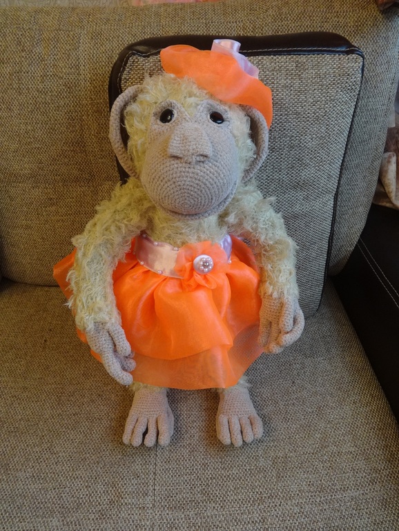 Игрушечный мир - животныеДалеко, конечно, до Нового Года, но уже хочется и символом новым обзавестись. В связи с чем связала обезьянку Роберту с другом-зайкой. Творила по МК Надежды Лесниковой (Надажда), огромное ей спасибо за возможность обзавестись таким вот детенышем. Ростиком большая, около 46 см.Юбочка и бантик - органза и атласная лента. Под срезом много фото.