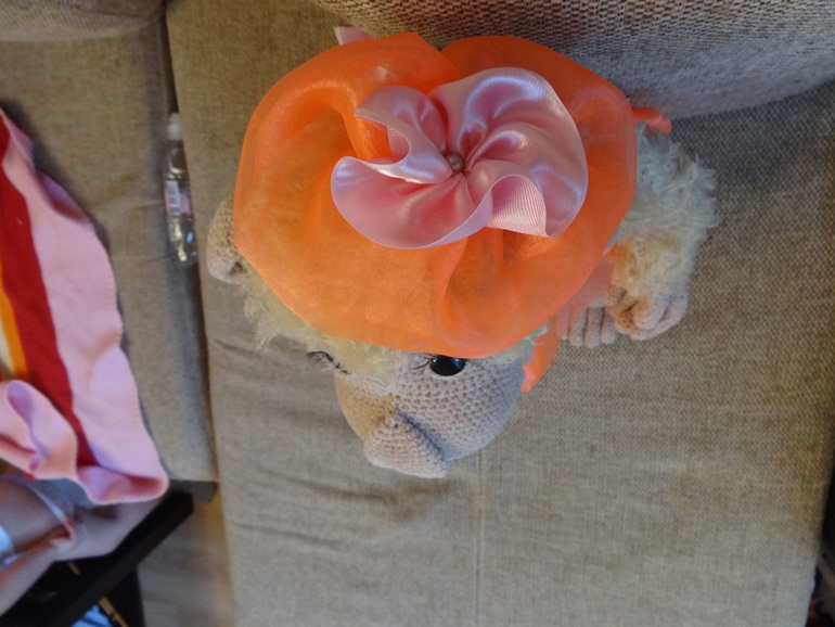 Вязала на сайте амигуруми. Она вся связана крючком. В принципе вязать несложно. Единственное что мне показалось тяжеловато это вязать внакладку, но потом привыкла. Ниточки надо на нее пушистые.