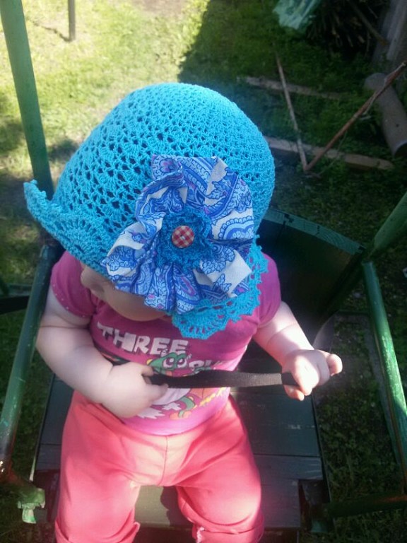 чуть не забыла))))) Это панамка поближе. Она из бело-голубого комплекта на заказ.