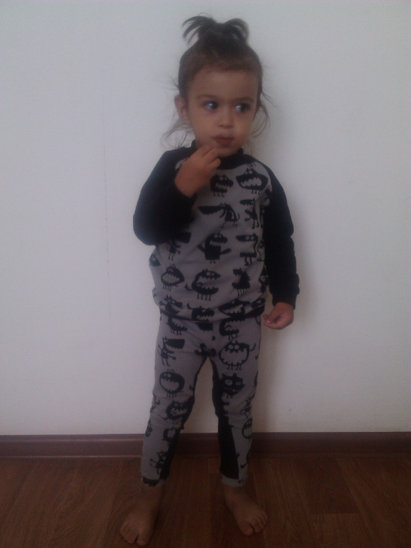 так она мне нравится))простите за скромность)), к ним сшились лосинки правда ткани не хватило и между ног вставила футер черный как рукава